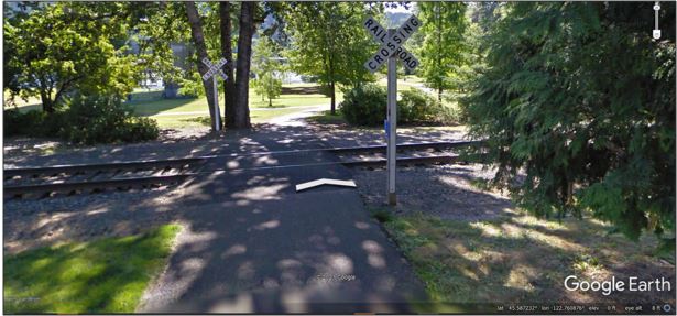 ECSI6480 Date: 2021-10-05 Caption: Google Earth view of railroad crossing