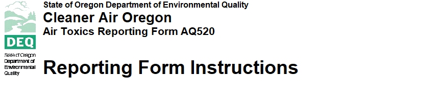 9 | All DEQ and Lane Regional Air Protection Agency permitted facilities, or facilities applying for Air Quality permits, will need to complete and submit this form as the first step in the Cleaner Air Oregon Air Toxics Program. | ||||||||||||||||